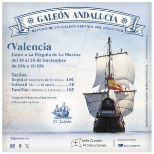 El Galeón Andalucía ha atracado en el entorno de Veles e Vents, junto a la Pèrgola, donde permanecerá abierto al público entre el 19 y el 30 de noviembre.