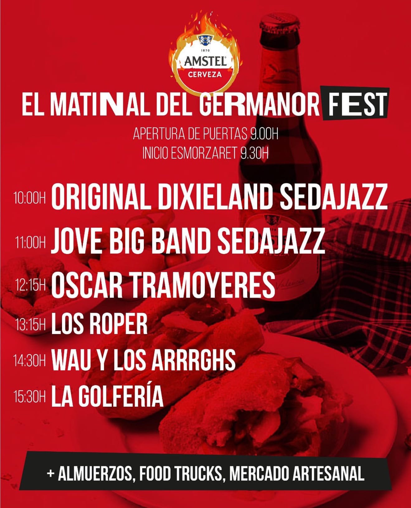 La jornada matinal estará amenizada por actuaciones de artistas locales como Los Roper, The Sepionets, La Golfería, Jove Big Band Sedajazz y Original Dixieland Sedajazz.