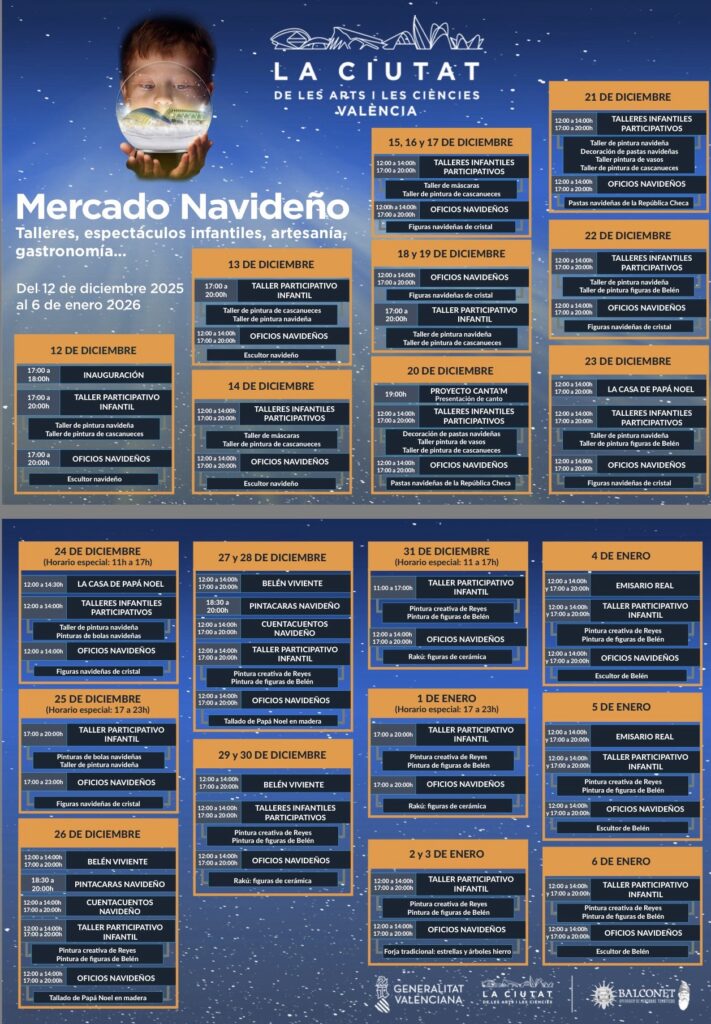 La Navidad regresa un año más a la Ciudad de las Artes y las Ciencias con un mercado artesanal lleno de magia, creatividad y propuestas para todas las edades.